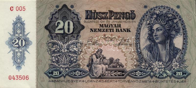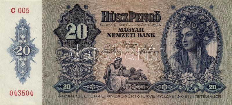 Leírás: 1941. 20P "005" (3x) egymás utáni sorszámmal! T:I
