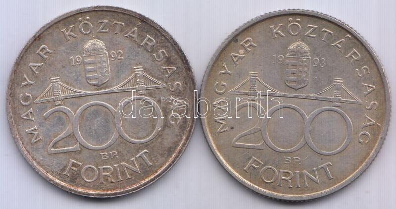 Leírás: 1992-1993. 200Ft Ag "MNB" (2x) T:2-