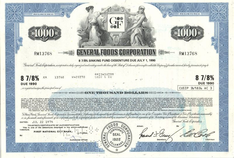 USA / Delaware 1974. General Foods Corporation élelmiszer-ipari vállal... https://www.darabanth.com/hu/191-Gyorsarveres/191.0/Numizmatika/Reszvenyek-es-sorsjegyek~200005/USA-Delaware-1974-General-Foods-Corporation-elelmiszer-ipari-vallalat-reszvenye-TII-szakada~II399402