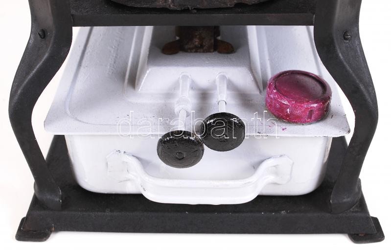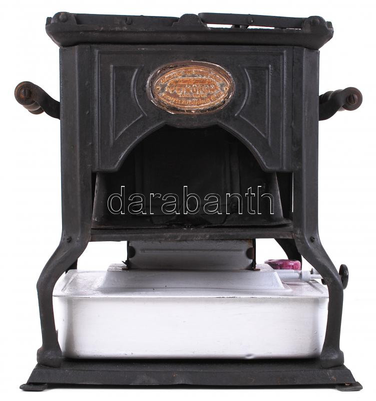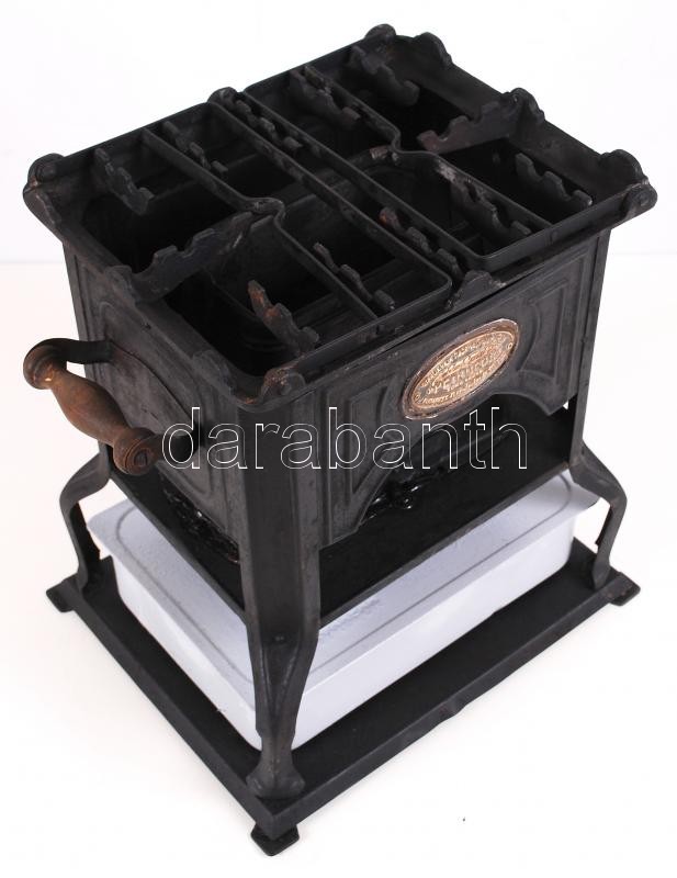 Leírás: Antik petróleum fém tűzhely, jelzett (Vajk Tibor), jó állapotban 32×32×20 cm