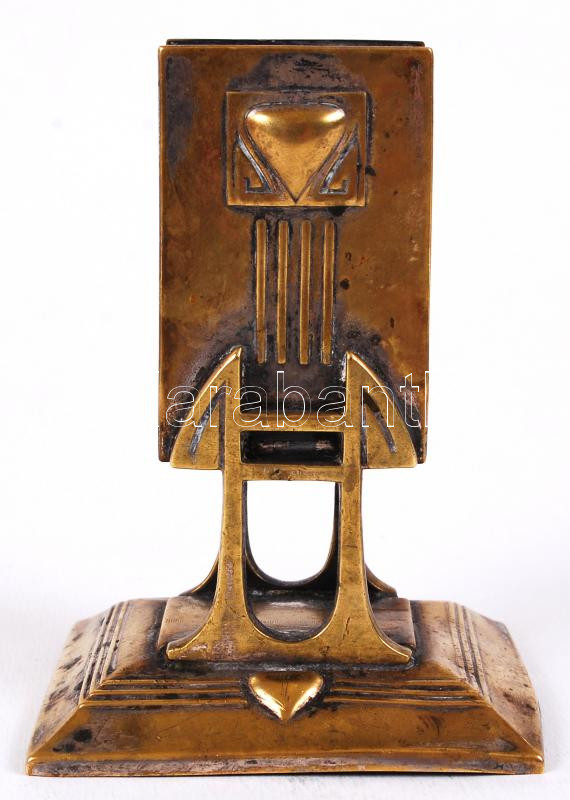 Leírás: Art deco gyufatartó, fém, m:10 cm + porcelán gyertyatartó, m:8 cm