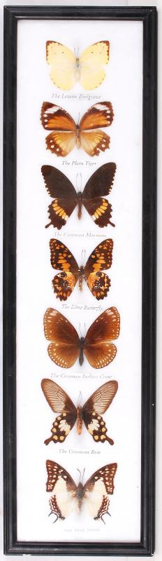 Beautiful Malaysian butterfly collection with descriptions, in frame, 53x15cm