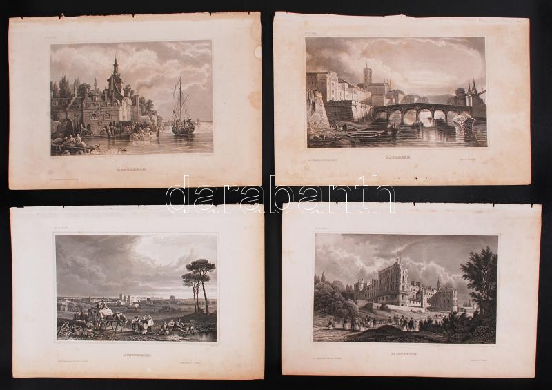cca 1850 35db acélmetszet különböző európai városokról és tájakról /