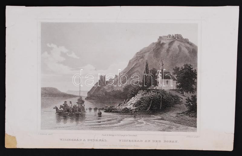Leírás: cca 1870 Ludwig Rohbock (1820-1883) - A. Fesca: Visegrád a Dunánál. Acélmetszet, jelzett, sérült 15,5×24,5cm