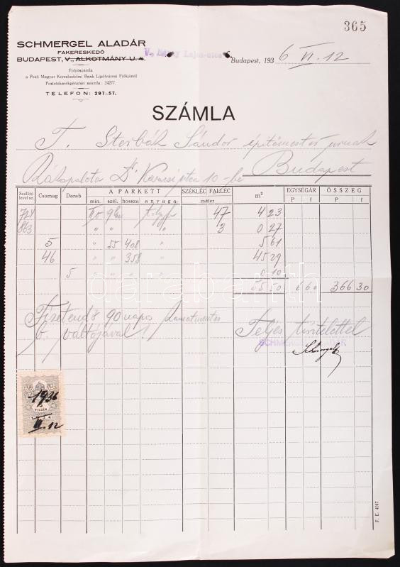1934 Kitöltött számla, Schmergel Aladár fakereskedő https://www.darabanth.com/hu/192-Gyorsarveres/192.0/Festmeny-mutargy-papirregiseg-egyeb/Okmanyok~2000021/1934-Kitoltott-szamla-Schmergel-Aladar-fakereskedo~II725490