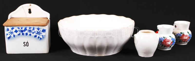 Leírás: Gránit tétel: Tál, só tartó (sérült), tejszín kiöntők, mustár tartó