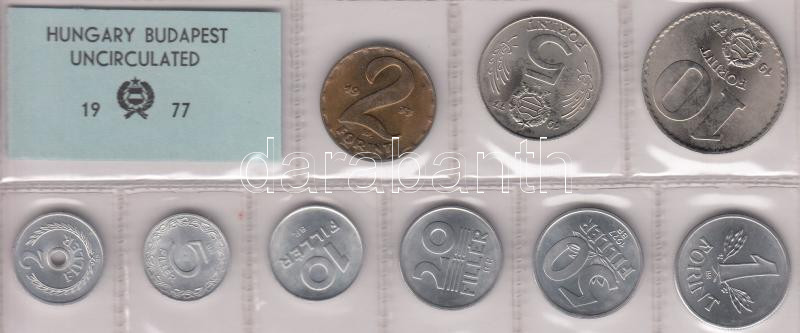 Leírás: 1977. 2f-10Ft 9db klf érmés forgalmi sor fóliatokban T:1