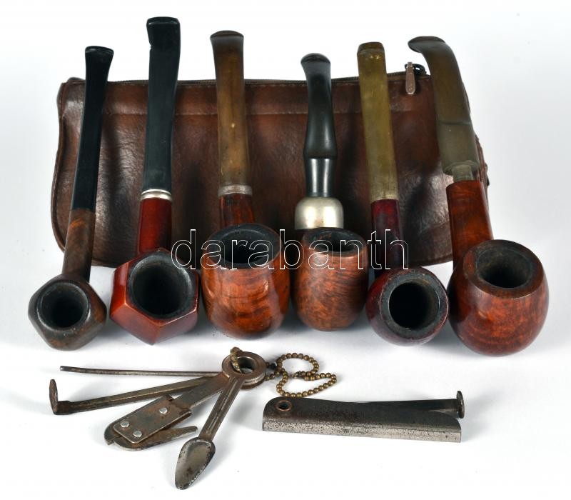 6db pipa, 2db pipatömőszett és egy dohányos tasak /