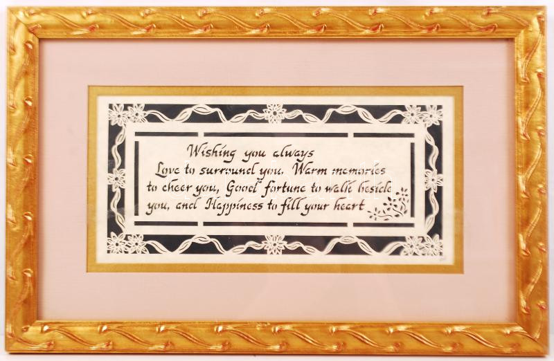 Leírás: Árnykép jókívánság angolul, üvegezett keretben /
