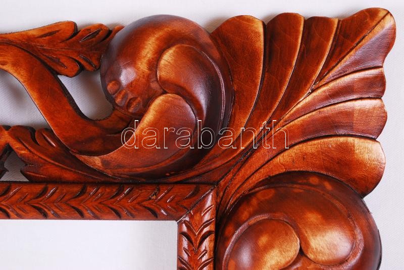 Egyedi készítésű dekoratív, faragott, pácolt, kagylós hársfa keret, hibátlan állapotban, belső: 50×40 cm, teljes méret:73×60 cm / Hand crafted unique frame