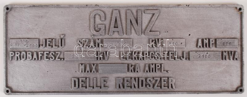 Leírás: Ganz, alumínium gyári tábla elektromos berendezéshez, 13x35cm