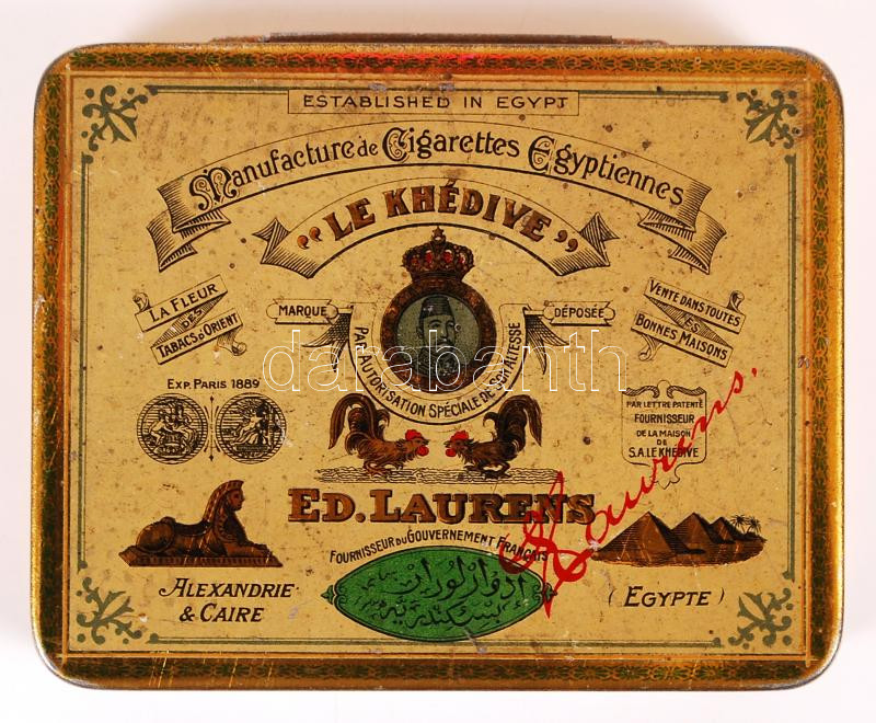 Khedive cigarettás doboz / Metal cigarette box https://www.darabanth.com/hu/193-Gyorsarveres/193.0/Festmeny-mutargy-papirregiseg-egyeb/Bolhapiac~200011/Khedive-cigarettas-doboz-Metal-cigarette-box~II724680