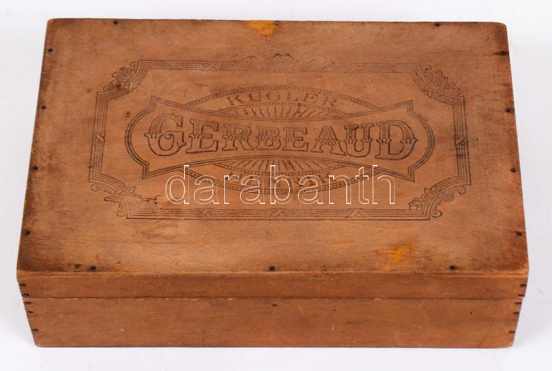 Vintage Gerbeaud wooden box,... https://www.darabanth.com/hu/193-Gyorsarveres/193.0/Festmeny-mutargy-papirregiseg-egyeb/Bolhapiac~200011/Regi-Kugler-Henrik-Gerbeaud-fa-dobozka--3Cbr3EVintage-Gerbeaud-wooden-box-15x23x7-cm~II733814