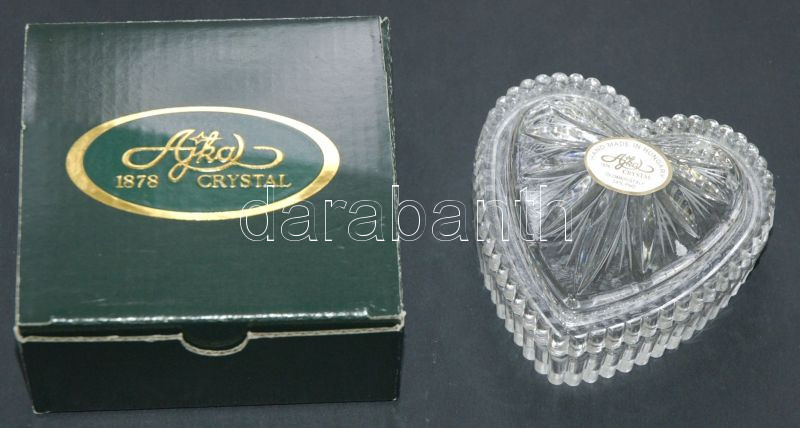 Leírás: Szív alakú Ajka kristály szelence eredeti dobozában