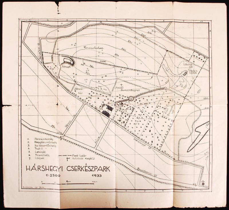 1933 Hárshegyi cserkészpark térképe 1:2500 méretarányban. Apró szakadá... https://www.darabanth.com/hu/193-Gyorsarveres/193.0/Festmeny-mutargy-papirregiseg-egyeb/Cserkesz~200022/1933-Harshegyi-cserkeszpark-terkepe-12500-meretaranyban-Apro-szakadasok-34C39731-cm~II706544