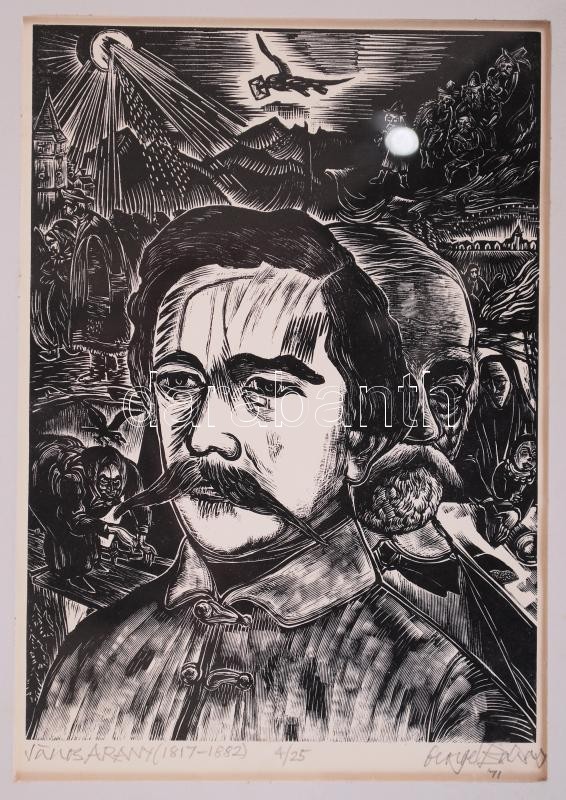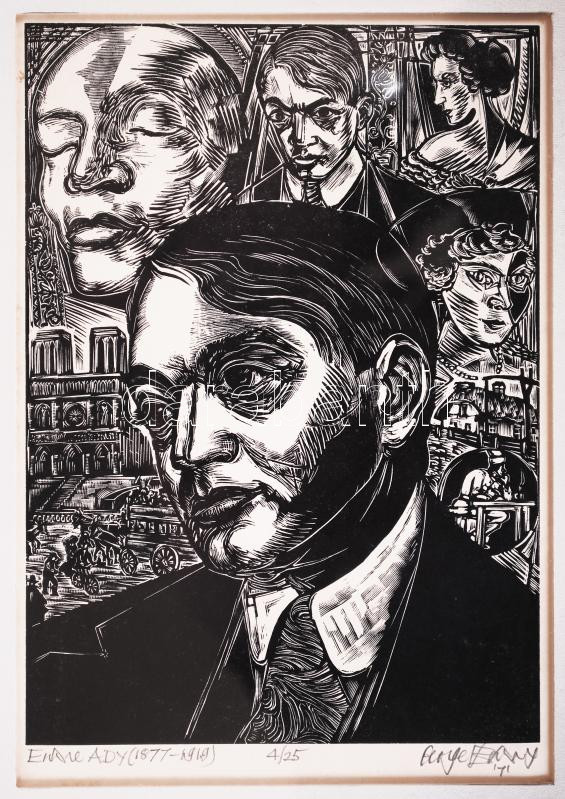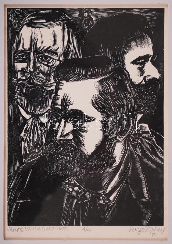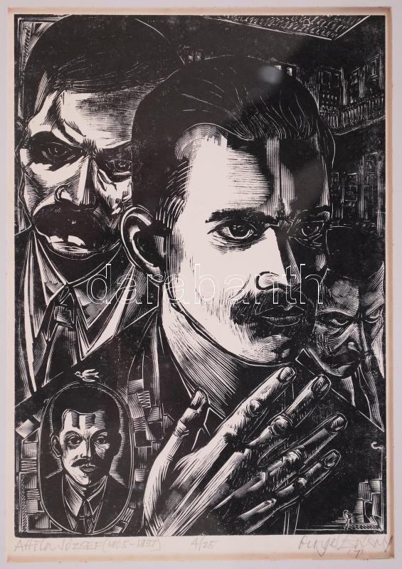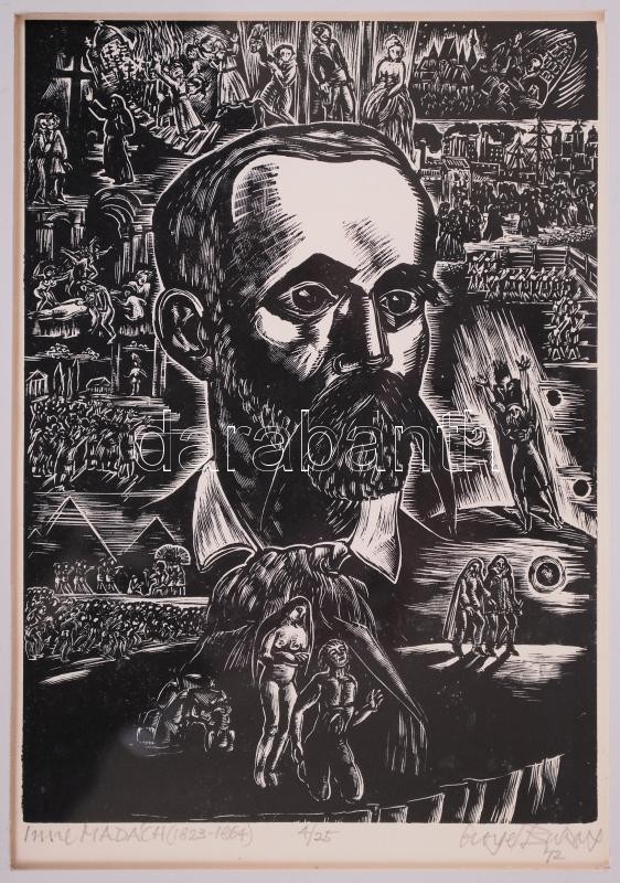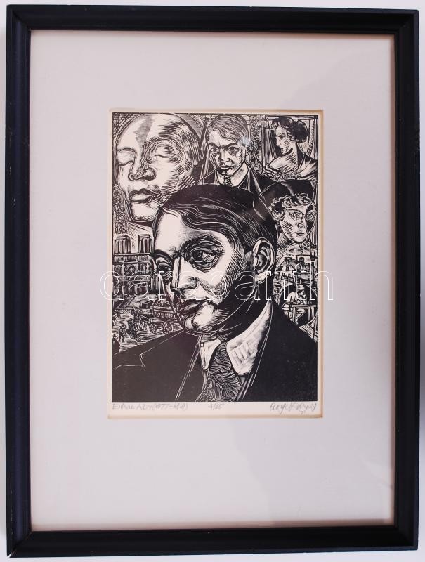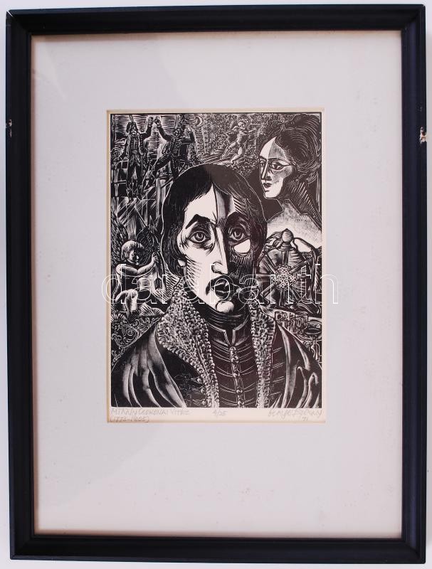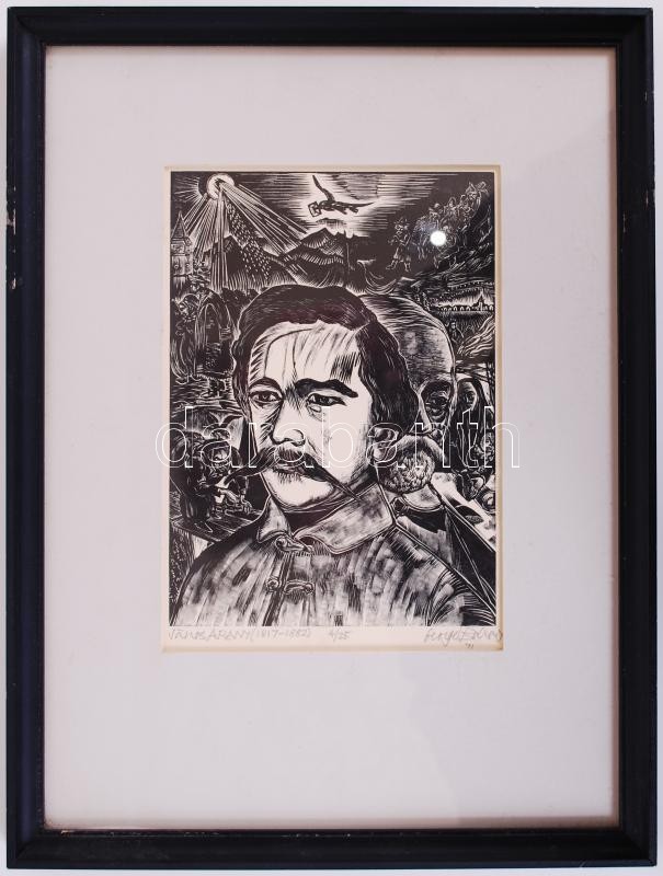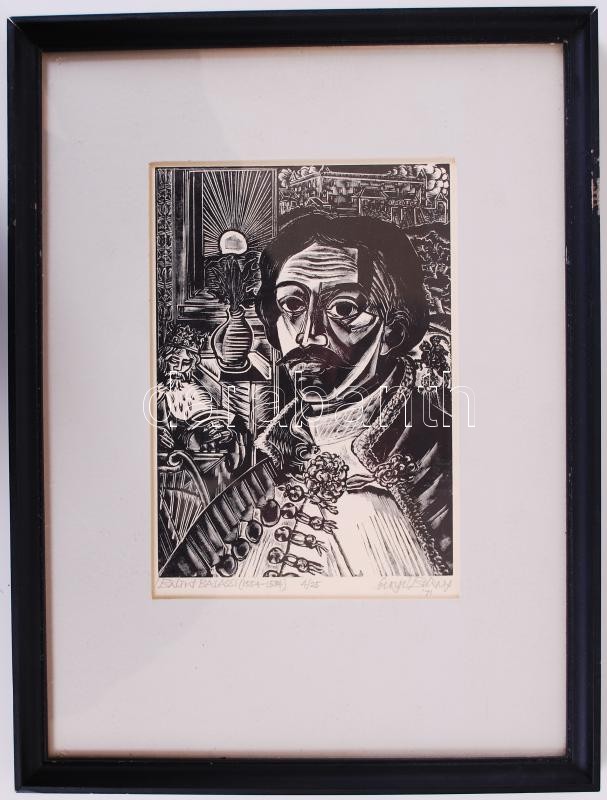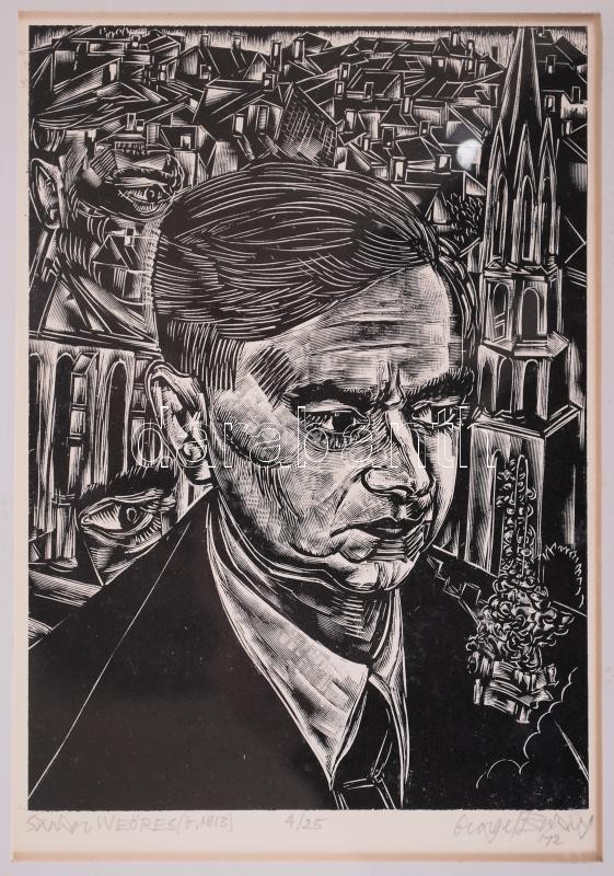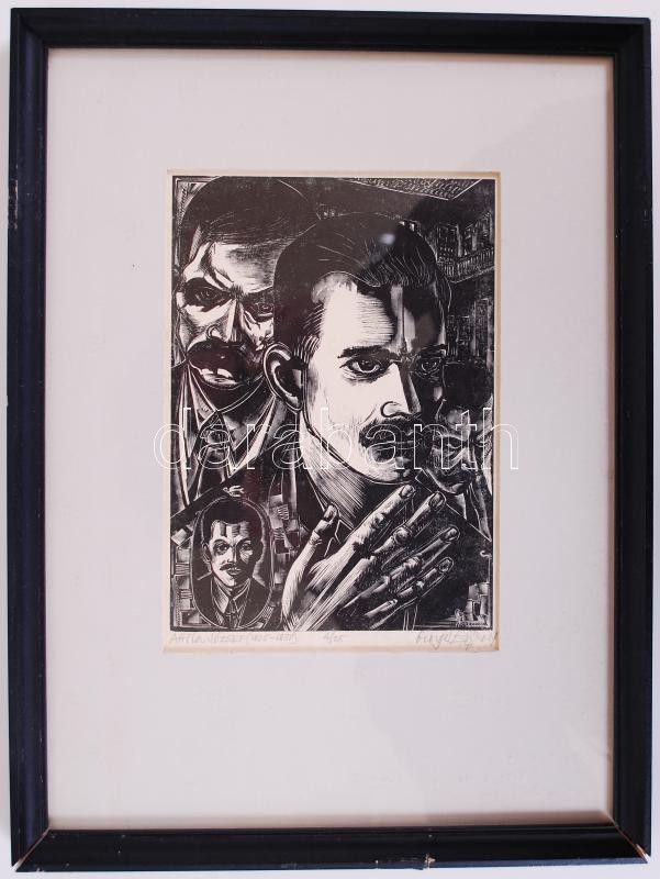 Buday György (1907-1990): 25 magyar író és költő portréja. Fametszet, 4/25, jelzett, paszpartuzva, illetve üvegezett keretben. A teljes sorozat egyben, ritkaság (!)