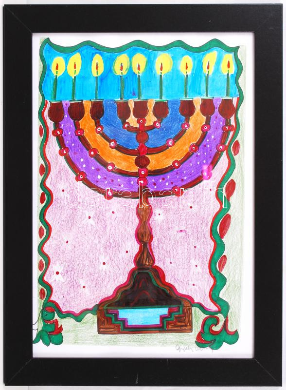 Gergely Nóra (1956): Menóra I, vegyes technika, papír, jelzett, üvegez... https://www.darabanth.com/hu/193-Gyorsarveres/193.0/Festmeny-mutargy-papirregiseg-egyeb/Festmenyek-es-grafikak~200001/Gergely-Nora-1956-Menora-I-vegyes-technika-papir-jelzett-uvegezett-keretben-28C39720-cm~II719763