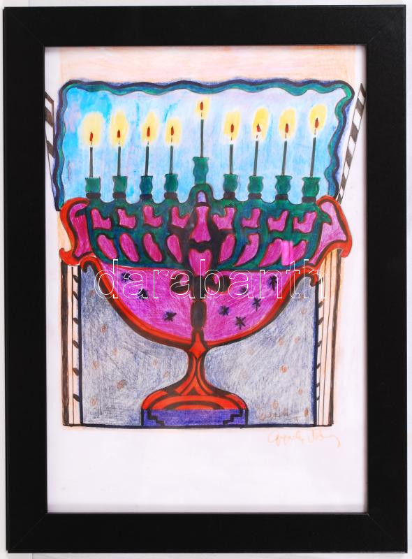 Gergely Nóra (1956): Menóra IV, vegyes technika, papír, jelzett, üvege... https://www.darabanth.com/hu/193-Gyorsarveres/193.0/Festmeny-mutargy-papirregiseg-egyeb/Festmenyek-es-grafikak~200001/Gergely-Nora-1956-Menora-IV-vegyes-technika-papir-jelzett-uvegezett-keretben-28C39720-cm~II719768