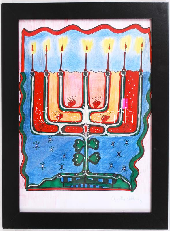 Gergely Nóra (1956): Menóra V, vegyes technika, papír, jelzett, üvegez... https://www.darabanth.com/hu/193-Gyorsarveres/193.0/Festmeny-mutargy-papirregiseg-egyeb/Festmenyek-es-grafikak~200001/Gergely-Nora-1956-Menora-V-vegyes-technika-papir-jelzett-uvegezett-keretben-28C39720-cm~II719769