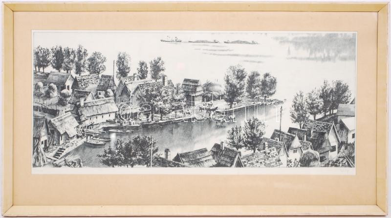 Leírás: Görög Rezső (1930-): Duna. Rézkarc, papír, jelzett, 49×89 cm
