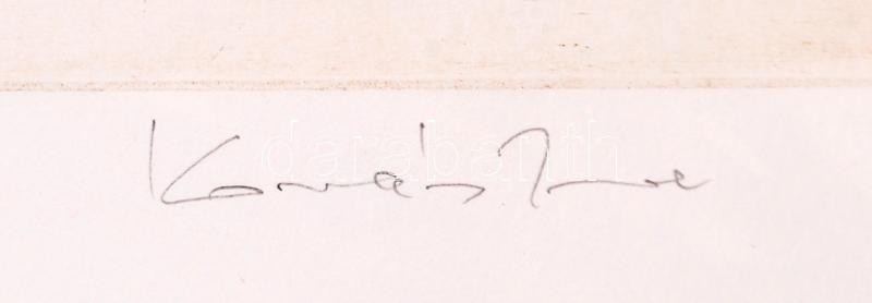 Leírás: Kovács Imre (1944-): Marcali. Rézkarc, papír, jelzett, 29×39 cm
