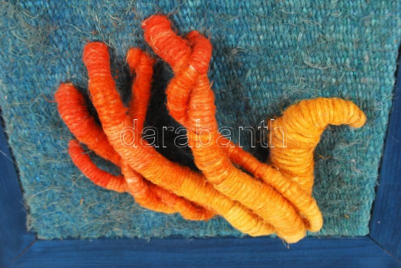 Leírás: Kubinyi Anna (1949-): Fáklya. Festett kender, textil, keretben, 24×20 cm