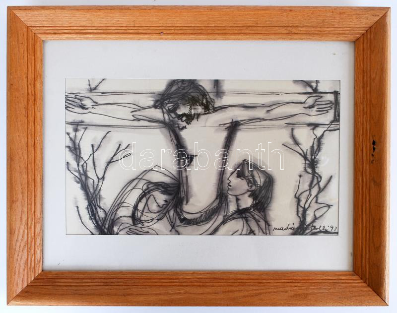 Macskássy Izolda (1945-): Krisztus a kereszten. Vegyes technika, selye... https://www.darabanth.com/hu/193-Gyorsarveres/193.0/Festmeny-mutargy-papirregiseg-egyeb/Festmenyek-es-grafikak~200001/Macskassy-Izolda-1945-Krisztus-a-kereszten-Vegyes-technika-selyem-kartonra-kasirozva-uvege~II697559