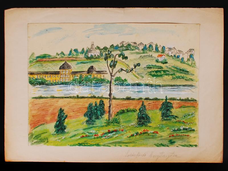 Leírás: Mannheim Róza (1880-1965): Lukácsfürdő. Akvarell, papír, jelzett, 24×33 cm