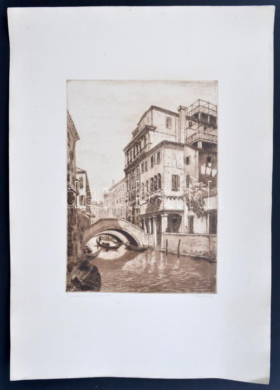 Leírás: Paulovits Pál (1892-1975): Canale. Rézkarc, papír, jelzett, 34×25 cm
