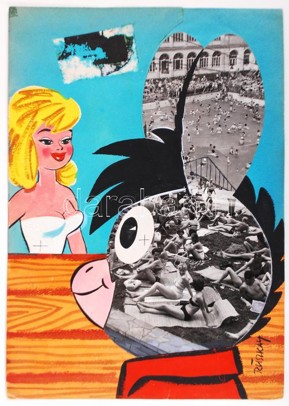 Leírás: Ruszkay György (cca 1930-cca 1990): a Füles címlapterve. Gouache és fotómontázs, jelzett, 29x21cm