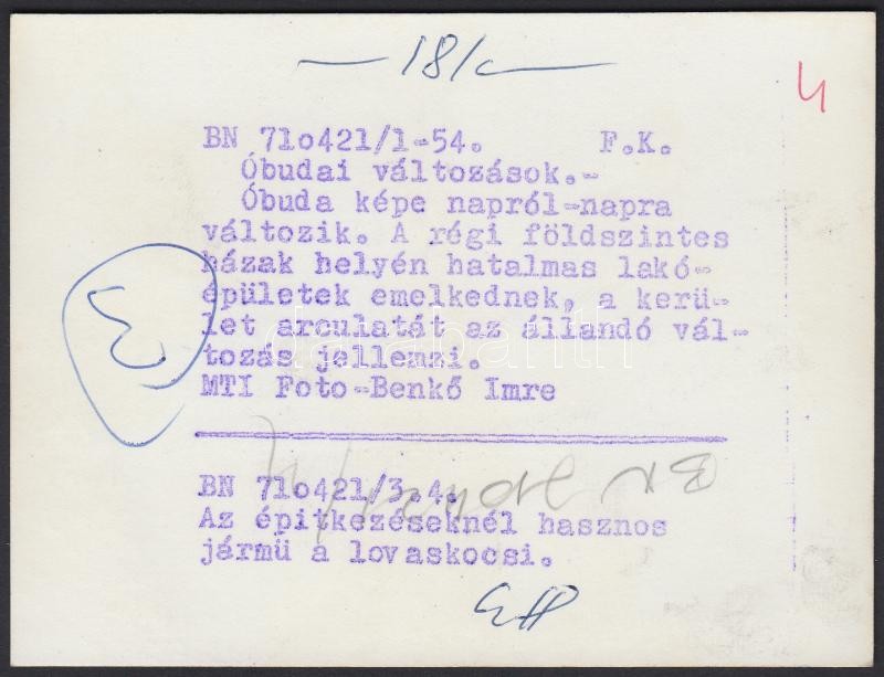 1971 Benkő Imre (1943): Lovaskocsi; sajtófotó, feliratozva, 9x12 cm https://www.darabanth.com/hu/193-Gyorsarveres/193.0/Festmeny-mutargy-papirregiseg-egyeb/Foto~200016/1971-Benko-Imre-1943-Lovaskocsi-sajtofoto-feliratozva-9x12-cm~II736253