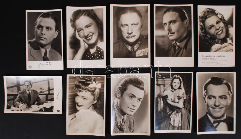 Leírás: cca 1940 10db színészfotó levlap méretben