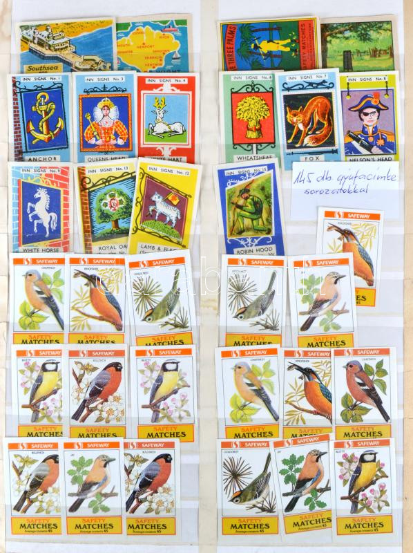 Leírás: 145 db gyufacímke, sorozatokkal, berakóban