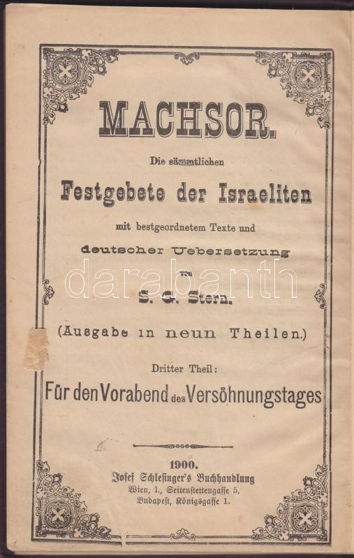 1900 Mákzór imádságos könyv az év minden napjára, Schlesinger József. Héber-magyar. Kissé laza egészvászon kötésben / German Hungarian jewish prayerbook