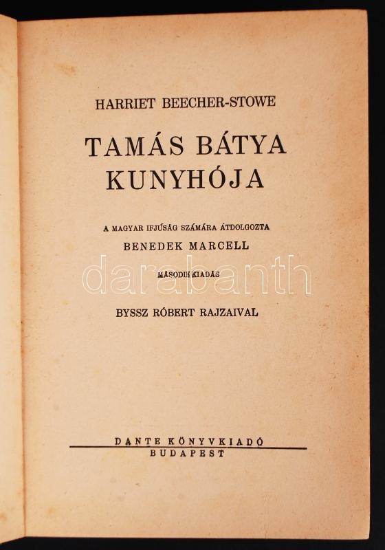 Harriet Beecher-Stowe: Tamás bátya kunyhója. Byssz Róbert rajzaival.Bu... https://www.darabanth.com/hu/193-Gyorsarveres/193.0/Festmeny-mutargy-papirregiseg-egyeb/Konyvek-Egyeb-ritkasagok~200039/Harriet-Beecher-Stowe-Tamas-batya-kunyhoja-Byssz-Robert-rajzaivalBudapest-en-Dante~II733507