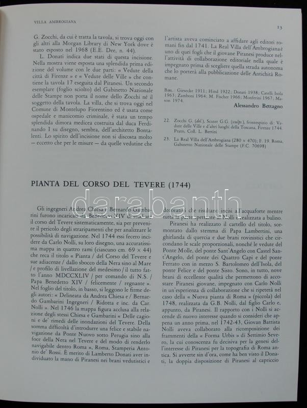 Bettagno, Alessandro: Piranesi. Incisioni-Rami-Legature Architetture. Vicenza, 1975, Neri Pozza Editore. Nagy Piranesi-album rengeteg képpel /