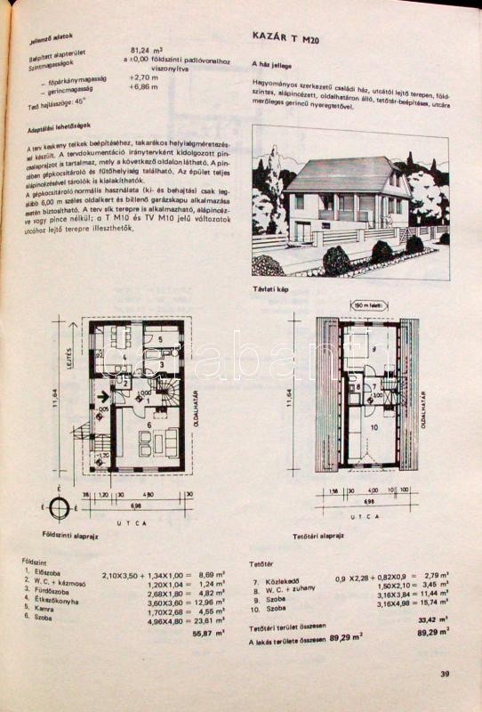 Leírás: Családi házak: A magánlakásépítés ajánlott tervei. Építésügyi Tájékoztatási Központ 1987