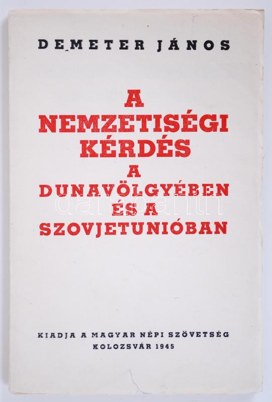 Demeter János: Nemzetiségi kérdés a Duna völgyben és a Szovjetunióban.... https://www.darabanth.com/hu/193-Gyorsarveres/193.0/Festmeny-mutargy-papirregiseg-egyeb/Konyvek-Tortenelem~200026/Demeter-Janos-Nemzetisegi-kerdes-a-Duna-volgyben-es-a-Szovjetunioban-Kolozsvar-1945-Magy~II643661