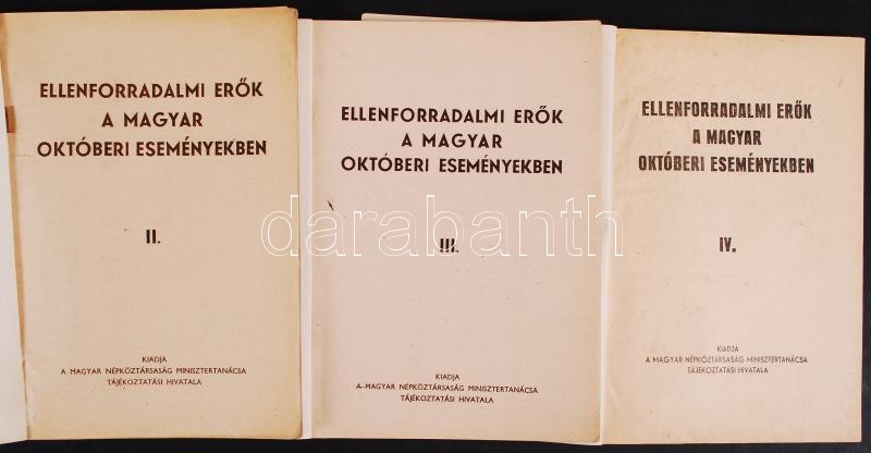 Ellenforradalmi erők a magyar októberi eseményekben II. III. IV. kötet... https://www.darabanth.com/hu/193-Gyorsarveres/193.0/Festmeny-mutargy-papirregiseg-egyeb/Konyvek-Tortenelem~200026/Ellenforradalmi-erok-a-magyar-oktoberi-esemenyekben-II-III-IV-kotet-MNM-tajekoztatasi-hiva~II722460