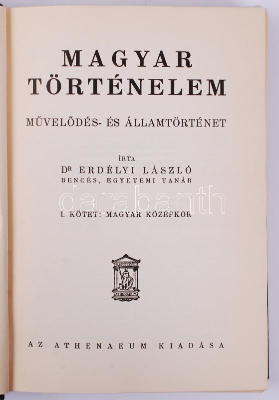 Leírás: Erdélyi László: Magyar történelem. Művelődés és államtörténet. I.-II. Bp. (é. n.) Athenaeum. Magyar középkor. 470 p. + 386p. Egészvászon kötésben