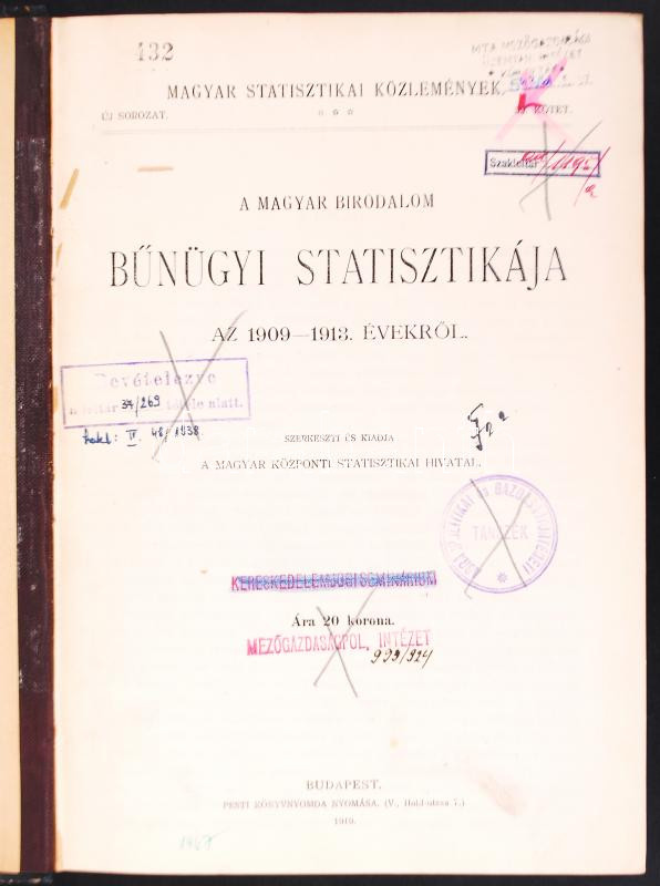 Magyar Statisztikai Közlemények: A Magyar Birodalom bűnűgyi statisztik... https://www.darabanth.com/hu/193-Gyorsarveres/193.0/Festmeny-mutargy-papirregiseg-egyeb/Konyvek-Tortenelem~200026/Magyar-Statisztikai-Kozlemenyek-A-Magyar-Birodalom-bunugyi-statisztikaja-1909-1913-Bp-1919-~II735605