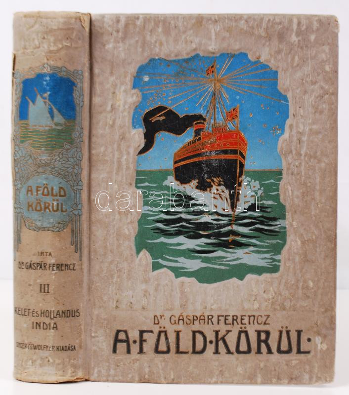 Gáspár Ferencz: A Föld körül V. Ausztrália. Csendes oceáni szigetek, Japánország, Khina, Szibiria. 158 képpel, 13 melléklettel. Bp., 1908, Singer és Wolfner. Kiadói, egységes, festett, dombornyomott, aranyozott, egészvászon sorozatkötésben, kopottas állapotú, gerincén sérült