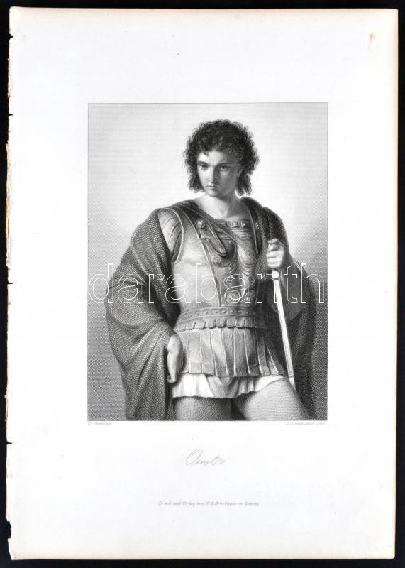1864 Iphigenia és Oresztész. 2db acélmetszet, Brockhaus + Wilhelm von Oranien, acélmetszet, megjelent a Goethe galéria című könyvben, Lipcse 1864, 15×11 cm