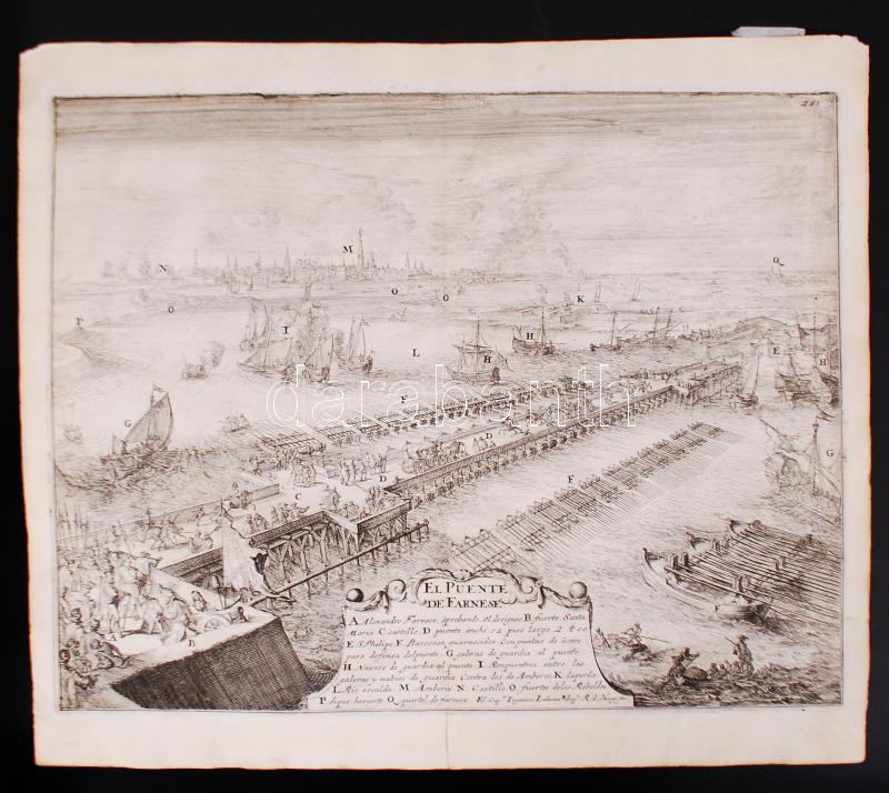 cca 1700 Ingeniro [Don Juan de] Ledesma (1630-1670) - Romeyn de Hooghe (1645-1708): El Puente de Farnese. Rézkarc, papír sérült /