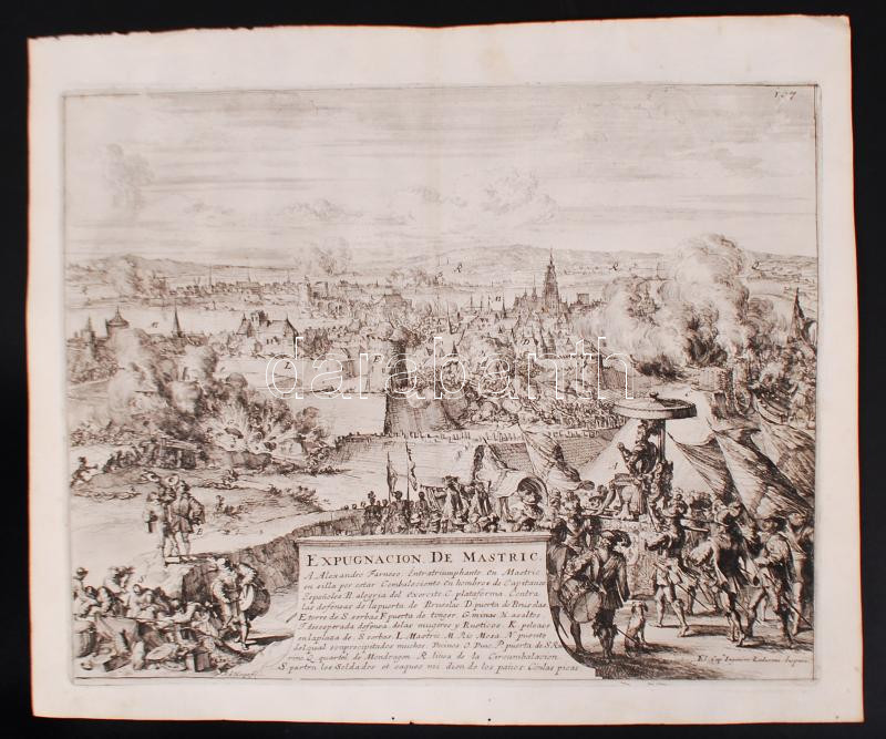Leírás: cca 1700 Ingeniro [Don Juan de] Ledesma (1630-1670) - Romeyn de Hooghe (1645-1708): Expugnacion de Mastric. Rézkarc, papír /
