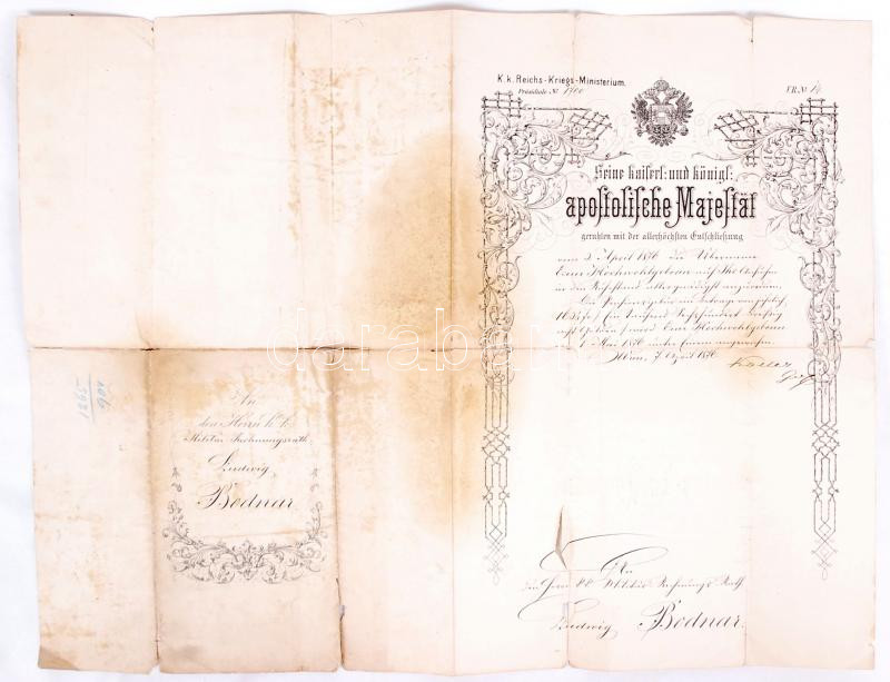 1876 Katonai kinevezési okmány szárazpecséttel / 1876 Austrian militar... https://www.darabanth.com/hu/193-Gyorsarveres/193.0/Festmeny-mutargy-papirregiseg-egyeb/Militaria~200023/1876-Katonai-kinevezesi-okmany-szarazpecsettel-1876-Austrian-military-document-with-dry-seal-a~II609503