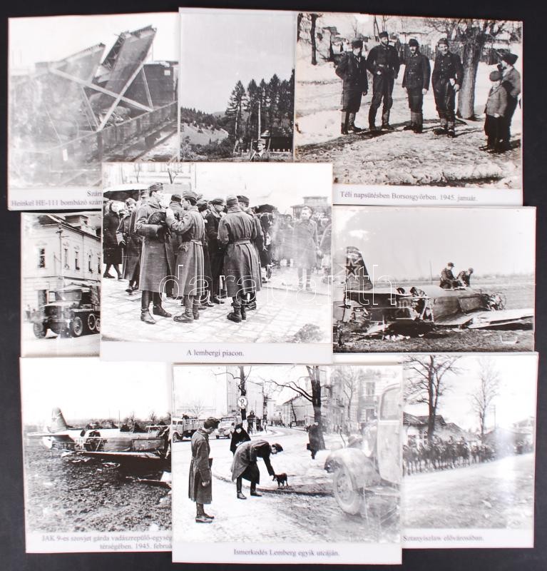 cca 1945 16db, II. világháborús fotó, kartonra kasírozva, feliratozva, korabeli negatívok későbbi nagyításai, vegyes minőségben /