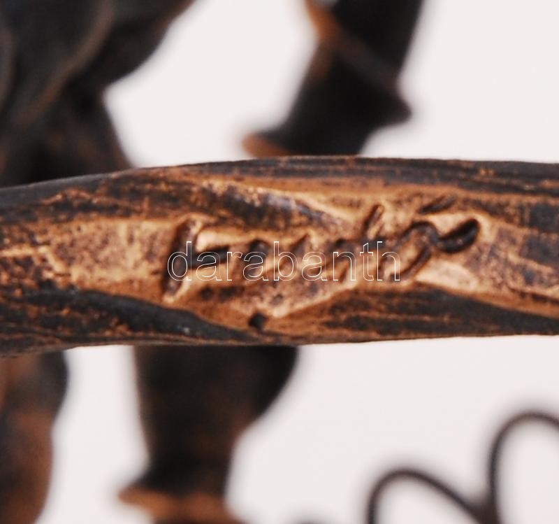 Leírás: Futó István (1970-): Antikolt szölőfürtös bortartó, kovácsolt vas, jelzett, hibátlan, 29×12 cm, m:19 cm