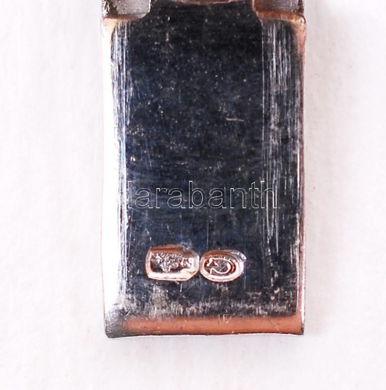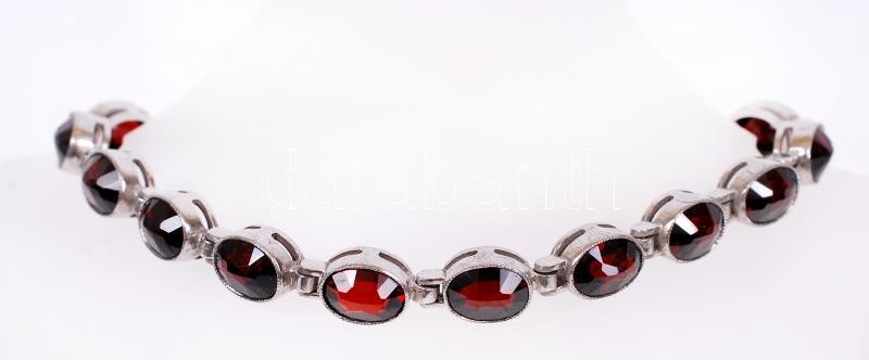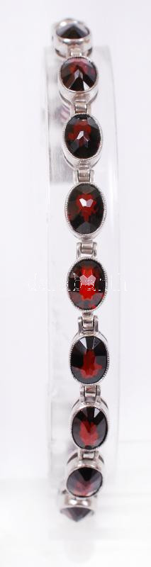Leírás: Női ezüst karkötő (Ag.) csiszolt gránáttal, jelzett, biztosító lánccal, h:21 cm, bruttó: 16,7 g