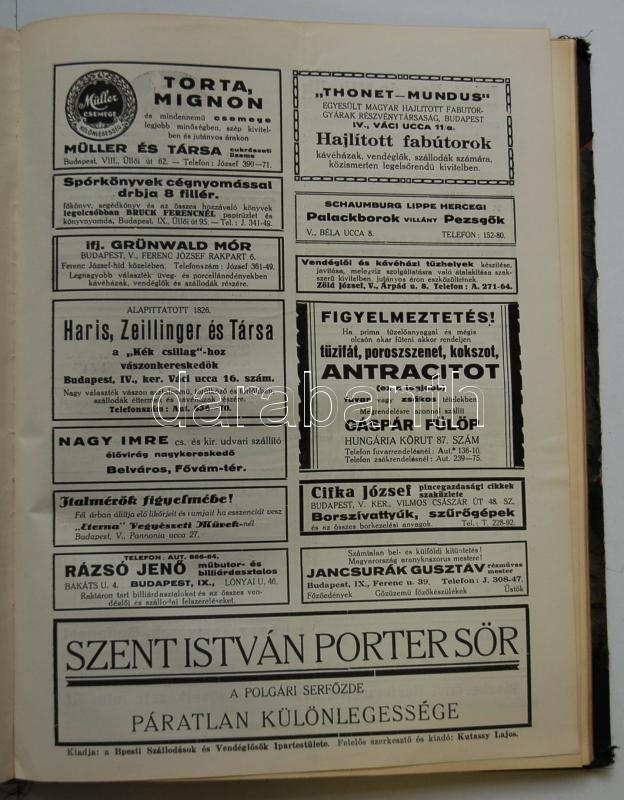 1929 Magyar Szállodás és Vendéglős Ballai Károly szerkesztésében. Komp... https://www.darabanth.com/hu/193-Gyorsarveres/193.0/Festmeny-mutargy-papirregiseg-egyeb/Nyomtatvanyok~200025/1929-Magyar-Szallodas-es-Vendeglos-Ballai-Karoly-szerkeszteseben-Komplett-evfolyam-Kisse~II510770